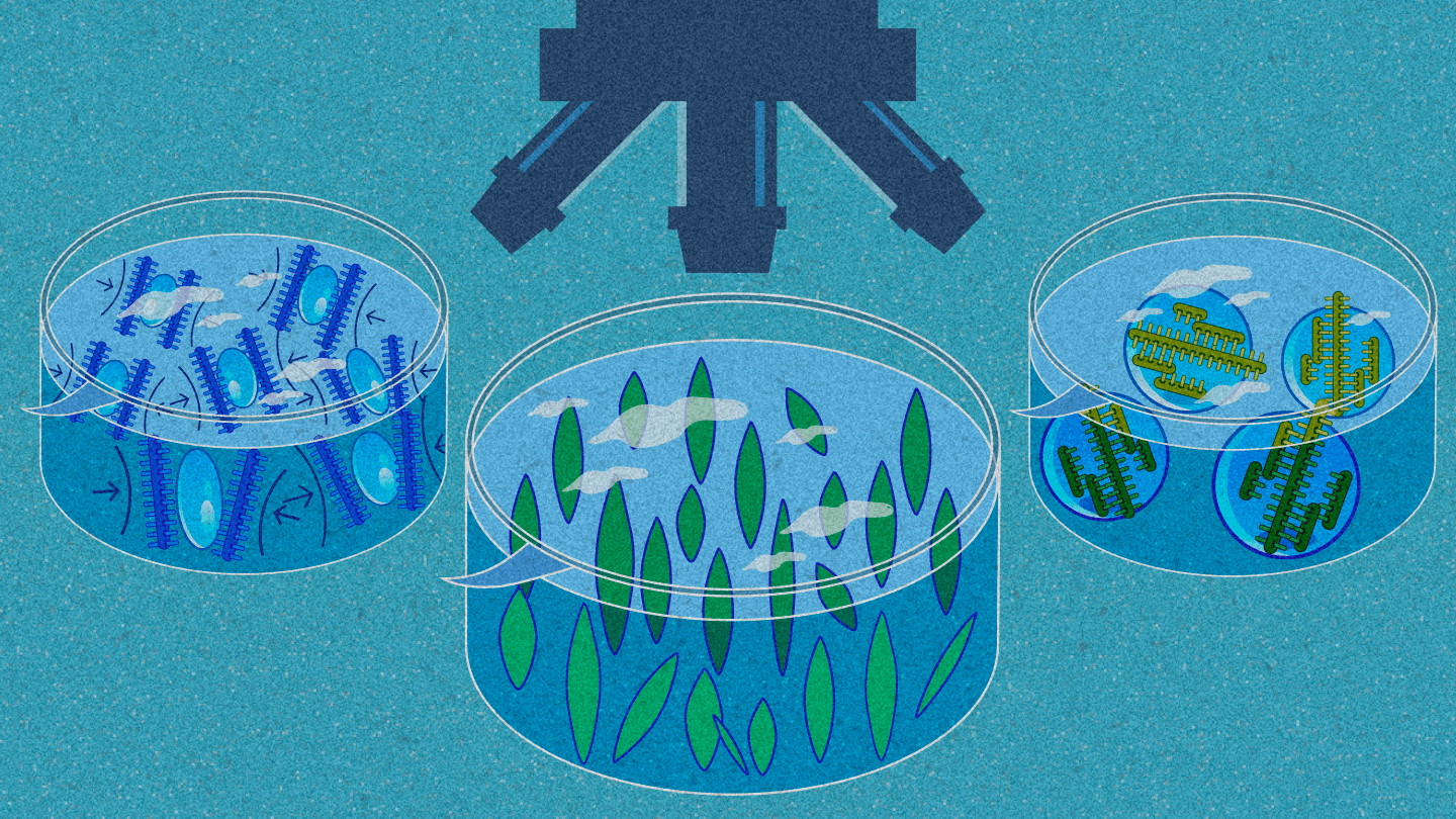 Cytoplasm seems to be a crowded and chaotic liquid where, however, different functions cooperate together in an orderly manner, making life itself possible. The dynamic order within the active fluid can be largely attributed to macromolecules (proteins, DNA, RNA, etc.) and supramolecular polymers (actin filament, microtubules, etc.) and their polymerization/depolymerization processes. Inspired by nature, we’d like to explore ways to build spatial-temporally controlled solution structures and functions by taking advantage of the unique chemical and physical properties of macromolecules and supramolecular polymers and their aggregation and phase separation behaviors. The confined, ordered and tunable liquid environment built from both bottom-up and top-down methods could offer more delicate control and a brand new perspective over a broad spectra of matters happening in the liquid or gel state including reactions, information and energy transfer and storage, system communications and cell proliferations, etc. Additionally, the dynamic yet ordered liquid structures could also be turned into functional materials for biomedical, electrical chemical applications and many others.